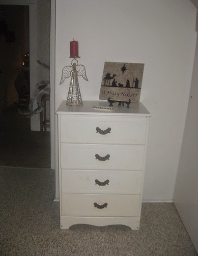 Strange thing in my room is this counter space over built-in cupboards – but it was the perfect place to display my sister’s Christmas Village! Big thanks to her and my mom for making it look so beautiful. I added my grandma’s ceramic tree to the middle of the setting.
